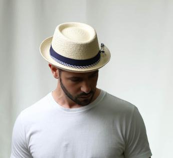 Chapeau mixte combinant le raffinement italien et l'élégance à la française pour un résultat magnifique et léger. Un bord court et une calotte plutôt haute pour la forme mythique d'un porkpie d'été toujours somptueux dans de la paille et élégant par sa forme indémodable.