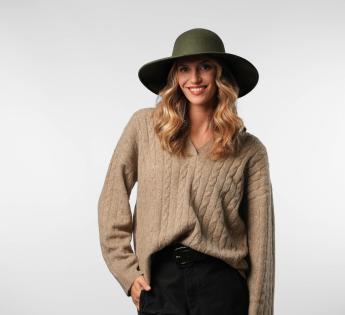 Épure et élégance pour cette capeline en laine feutrée, au design minimaliste et sans garniture. Sa calotte ronde et ses larges bords créent une silhouette fluide, pleine de grâce. Fabriquée en Italie, elle offre une belle tenue tout en restant souple et agréable à porter.