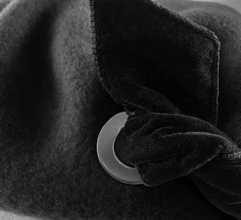 Ce béret revisité joue sur les contrastes avec audace et raffinement. Sa forme basque, de coupe moyenne, est twistée par un duo de détails forts : un nœud en velours tressé à la main et deux œillets métalliques qui modernisent la silhouette. Un équilibre subtil entre tradition et design, pensé pour une allure féminine affirmée.