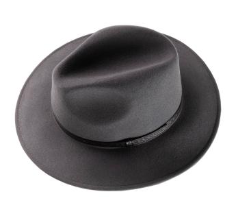 Chapeau de forme traveller offrant un confort thermique optimal pour une température constante et agréable en permanence. Sa matière est en effet du feutre issu d'une laine très fine, chaude et légère. Son toucher est doux et sa forme est décorée d'une garniture de cuir gravé avec motif géométrique.