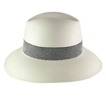Panama de création authentique tissé en Équateur et formé en Alexandrie. Il reflète savoir-faire et élégance même dans ses détails. Son design très raffiné est un clin d'œil à la saison printemps/été sous sa calotte chic et originale. Il est rehaussé d'un galon noir et blanc dessinant des étoiles.