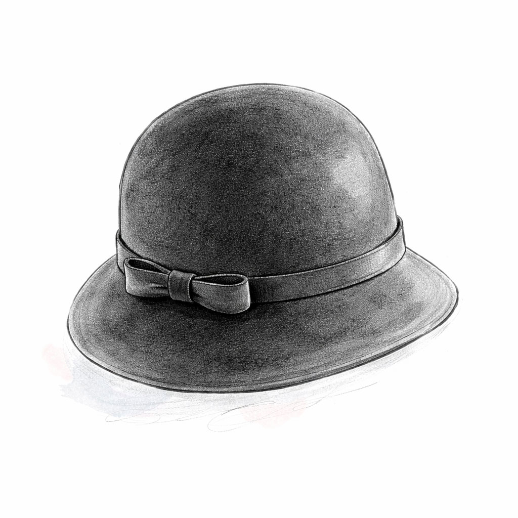 Chapeau Cloche : la calotte doit être parfaitement ronde , ni trop haute, ni trop plate , afin d’épouser la tête avec naturel. Les bords, quant à eux, sont courts et inclinés vers le bas , parfois légèrement asymétriques , pour encadrer le visage sans jamais l’alourdir. Les ornements, lorsqu’ils existent, restent discrets : un nœud, un ruban, un jeu de matière… toujours au service de l’allure. Un chapeau cloche réussi se reconnaît à son tombé, à son équilibre, et à cette impression subtile qu’il fait corps avec celle qui le porte.