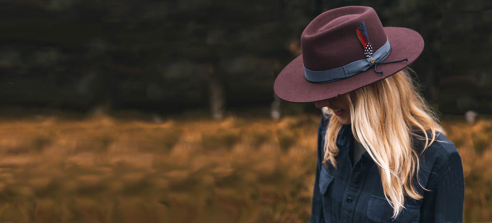 Le chapeau rancher a une place de choix dans les collections Bon Clic Bon Genre. On le retrouve en version féminine avec l’Evasion de la gamme B Couture. Ce modèle allie élégance avec sa fine chaîne dorée et esprit d’aventure avec ses bords larges.