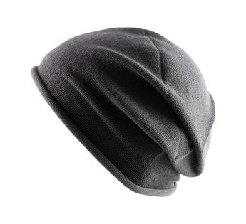 Bonnet de coton avec un design enroulable. Sa partie supérieure est évasée tel un béret pour une coupe ample. Sa forme offre ainsi un grand confort à chaque occasion.