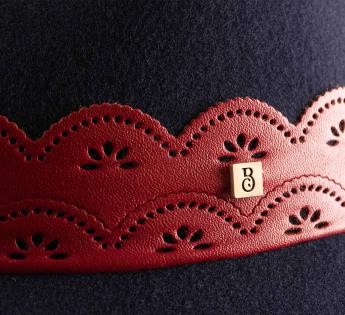 Le galon en simili cuir, travaillé comme une dentelle ajourée, apporte une touche de féminité assumée. Son contraste intense insuffle une énergie bohème et rock chic. La griffe discrète signe notre création artisanale. Ce chapeau incarne l’équilibre parfait entre sophistication, originalité et liberté de style.