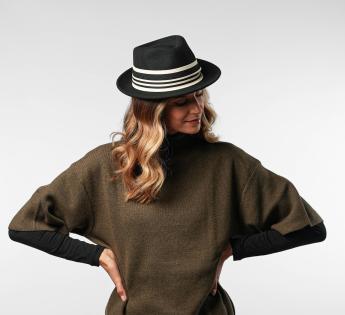 Équilibre parfait entre sobriété et audace, ce chapeau Fédora à bord mi-long séduit par sa forme discrète et facile à adopter au quotidien. Confectionné en feutre léger mais chaud, il est rehaussé d’un galon ultra graphique mêlant maille texturée, satin lisse et finitions contrastées.