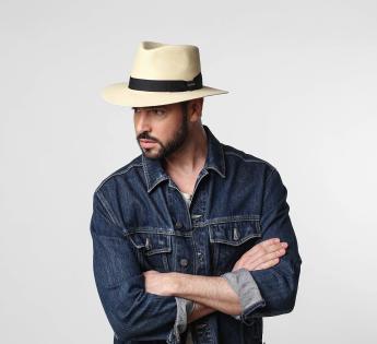 Chapeau Panama véritable réalisé à partir d'une paille exceptionnelle, fine, souple mais résistante, et également légère. C'est un chapeau haut de gamme avec une confection d'une qualité irréprochable. Il est entièrement réalisé à la main, selon la tradition ancestrale, et est fini avec très grands soins avec notamment un galon soyeux.