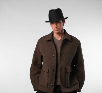 Fabriqué à la main en Italie, il est conçu en 100 % feutre de lapin, un matériau noble reconnu pour sa douceur, sa légèreté et sa capacité à conserver sa forme dans le temps. Une pièce d’exception, pensée pour durer, entre allure urbaine et raffinement intemporel.
