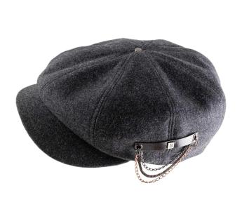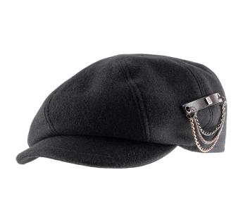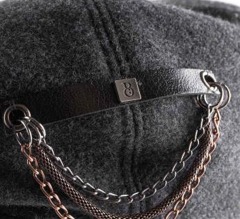 Cette casquette casse les codes avec audace. Sa ligne décalée, combinée à une garniture en cuir et chaînes métalliques ajoutée dans notre atelier à Lyon, crée un équilibre parfait entre allure rock et raffinement. Fabriquée en Italie, elle gagne en caractère grâce à ce travail artisanal unique.