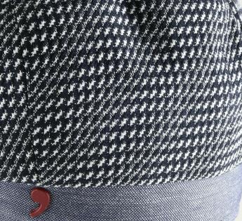 Casquette ample formée de 8 pans et qui retombe aussi bien sur la nuque. Elle enveloppe bien la tête de sa composition textile agréable et plaisante. Son étoffe, très proche du motif pied-de-poule, crée un visuel sobre, facilement accessoirisable.
