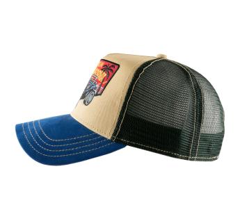 Casquette trucker qui combine coton, velours sur la visière et filet. Une casquette vintage, élégante et solide, qui offrira une belle touche sportive à notre allure. Sa broderie au front rappel sa nature estivale et protectrice contre le soleil.