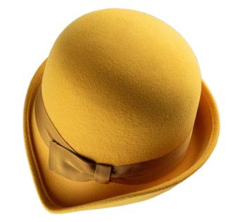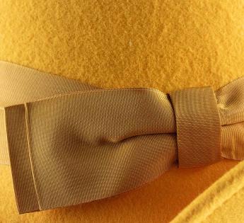 Avec sa silhouette élégante et sa calotte haute, ce chapeau cloche affirme un style résolument rétro. Son bord relevé à l’avant donne de la structure à la ligne et encadre délicatement le visage. Le galon en gros-grain ton sur ton, terminé par un nœud plat, accentue son raffinement sans superflu.