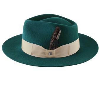 Le Fedora est ici sur-mesure et fait d'un feutre de laine qui a été imperméabilisé. En accompagnant nos tenues cet hiver, ce modèle nous procure plus de sérénité avec sa protection efficace et renforcée. Ses bords sont plats et entourent une couronne en forme de goutte d'eau pour un résultat fort élégant.