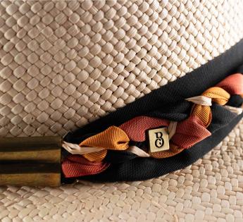 Panama authentique issu d'un savoir-faire manuel très ancien et toujours inégalé. Sa paille souple est ici décorée d'une bande tressée à l'atelier avec un ingénieux mélange de matières - raphia et satin. Ce modèle mixte est un Traveller, idéal pour la saison.