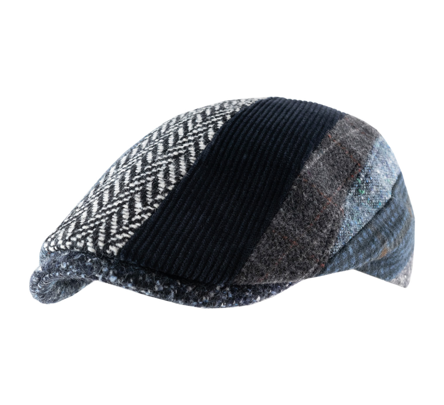 Réunion de textures, de matières, de velours et de laine pour cette casquette plate. Elle offre une allure sobre grâce à son mélange de motifs chevron et tartan, facilement accessoirisable avec des surpiqures. Sa grande teneur en laine fait qu'elle constitue un accessoire chaud et idéal pour protéger nos têtes tout au long de la saison.