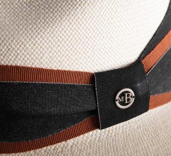 Ce Panama Montecristi se distingue par son ruban en gros grain raffiné aux coloris intemporels, dont le montage en superposition apporte un relief subtil. Le détail asymétrique dépassant sur l'arrière insuffle un dynamisme moderne à cette silhouette classique, signée par un badge argenté brossé.