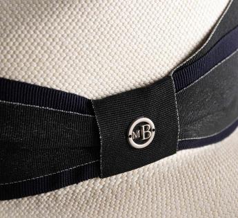Ce Panama Montecristi se distingue par son ruban en gros grain raffiné aux coloris intemporels, dont le montage en superposition apporte un relief subtil. Le détail asymétrique dépassant sur l'arrière insuffle un dynamisme moderne à cette silhouette classique, signée par un badge argenté brossé.