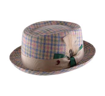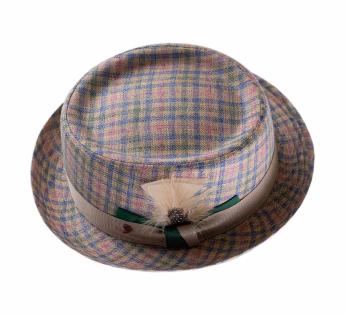 Avec sa forme pork pie emblématique, ce chapeau sublime instantanément l’allure. Son motif à carreaux tartan pastel lui donne du relief, de la profondeur, et cette originalité rare qui fait tout son charme.