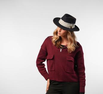 Un chapeau à la fois audacieux et chargé de caractère, entièrement fabriqué dans notre atelier.