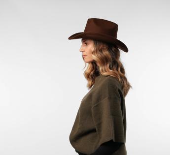 Fabriqué en Italie, ce chapeau western revisite avec sobriété les codes iconiques du style cowboy. Sa calotte cattleman bien creusée lui confère une silhouette authentique, tandis que ses bords relevés à large courbure évoquent l’élégance des grands espaces.
