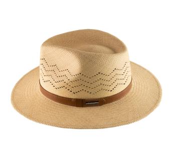 Authentique panama conçu et fabriqué en Équateur de façon artisanale. Son tressage ajouré crée un motif sur la calotte pour un rendu aussi stylé que fonctionnel. Il est garni d'une petite lanière pour renforcer son côté chic.